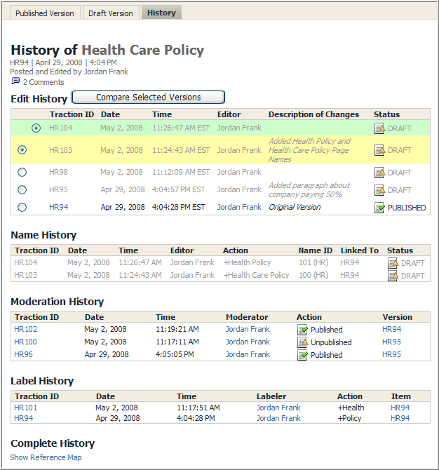 If you want to see a combined view of the history (including other types of Audit Trail information), you can click on the Show Reference Map link to learn more about how this article and the context around it has evolved.